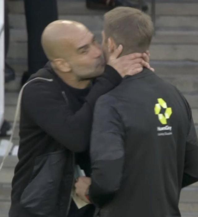 9月22日英超日报讯 阿森纳vs曼城第90分钟,瓜迪奥拉场边和裁判交流,还亲了一口裁判的脸颊!